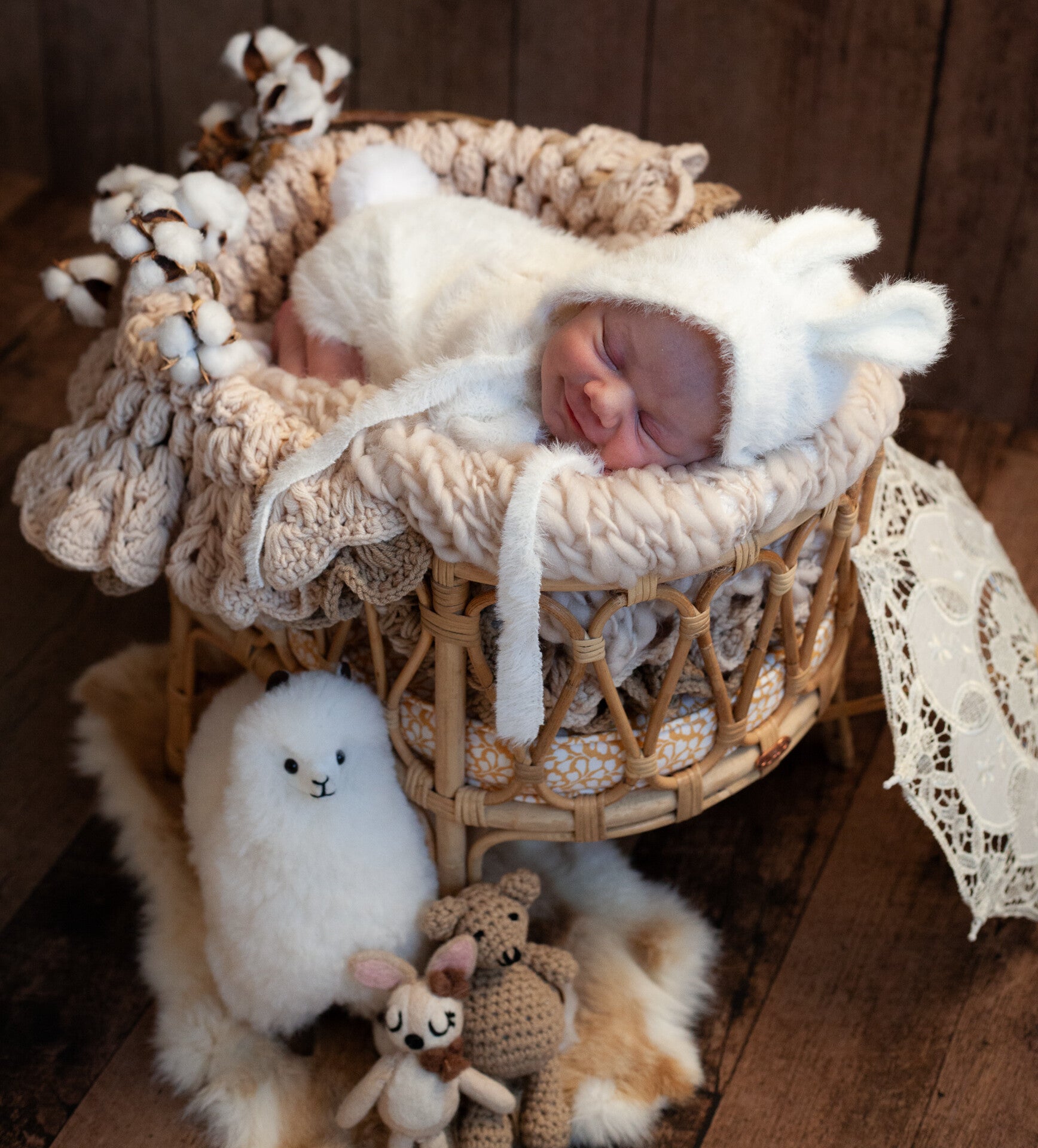 Explorez l'ambiance chaleureuse, diversifiée et vivante de ma galerie. Découvrez des photos de nouveau-nés en plein sommeil, parfois éveillés, dans des positions variées et avec divers accessoires. Admirez les détails des petits pieds et des petites mains, ainsi que des portraits rapprochés pour apprécier chaque détail.